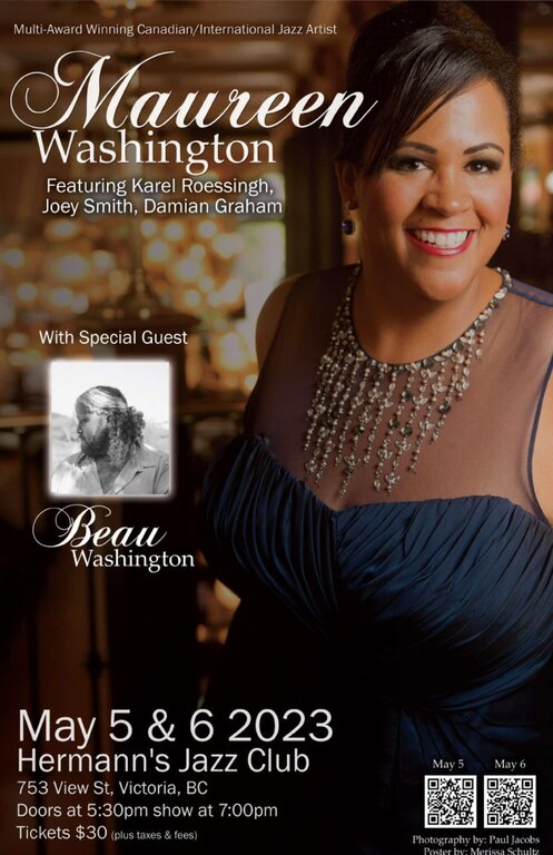 Award winning, International Jazz and Blues artist, Maureen Washington is one of Vancouver Island's most sought after vocalists. Her rich tones and captivating emotions have cultivated large audiences with a styling that encompasses the soul of Etta James, Carmen McRae and the modernity of Holly Cole. And yet, she remains a voice of her own.