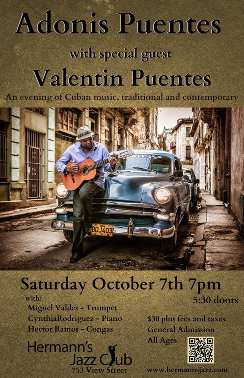 Sat. October 7th 2023 7:00 PM - 9:00 PM doors at 5:30 PM (All Ages) An evening of Cuban music, traditional and contemporary.