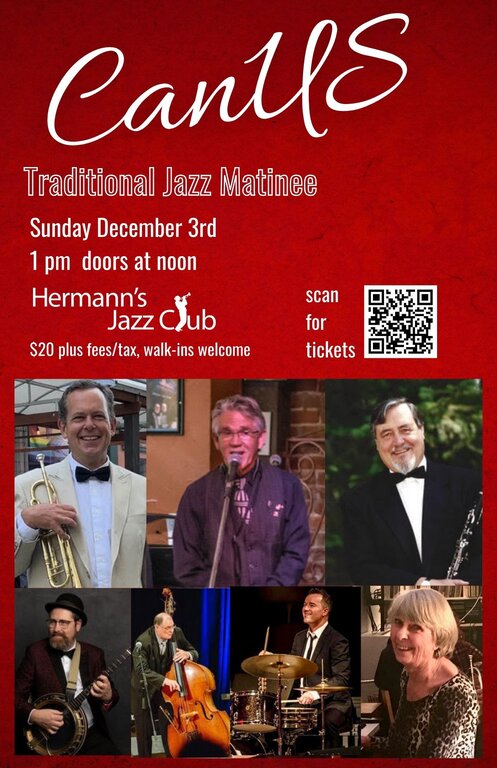 Amazingly, this is the 32nd year of CanUS performing at Hermanns Jazz Club while at the same time touring the U.S. and Canada Traditional Jazz Festivals for 25 of those years. Their concert at the Kennedy Center, Washington, D.C. can still be seen on youtube where you can also listen to all 8 of their CD’s.