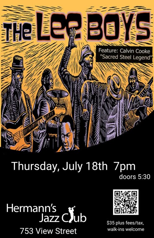 The Lee Boys are one of America’s finest African American sacred steel ensembles. The Lee Boys grew up in the church where their father was a pastor and a steel player himself. “Sacred steel” is a type of music described as an inspired, unique form of Gospel music with a hard-driving, blues-based beat. The musical genre is rooted in Gospel, but infused with rhythm and blues, jazz, rock, funk, hip-hop, country and ideas from other nations.