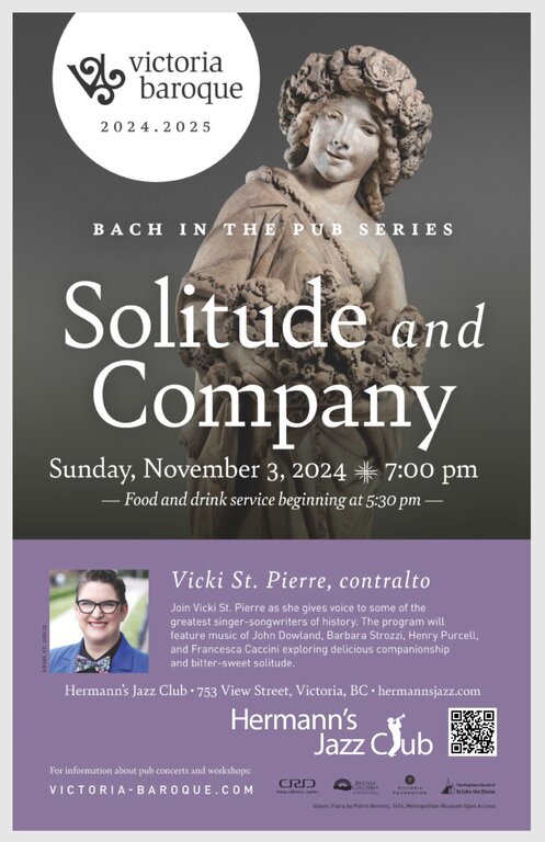Join Vicki St. Pierre as she gives voice to some of the greatest singer-songwriters of history. The program will feature music of John Dowland, Barbara Strozzi, Henry Purcell, and Francesca Caccini exploring delicious companionship and bitter-sweet solitude.