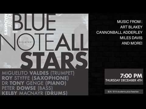 Kelby MacNayr's Blue Note Repertory All-Stars features Cuban trumpet sensation Miguelito Valdes, the lyrical saxophonist Roy Stffe, pianist Dr. Tony Genge and explosive drumming of Kelby MacNayr! and MORE!